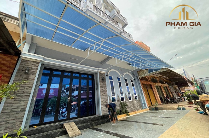Khác với các vật liệu mái che truyền thống, Polycarbonate cho phép ánh sáng tự nhiên đi qua, đồng thời hạn chế phần nhiệt không mong muốn nhờ lớp phủ chống tia UV và cấu trúc vật liệu đặc biệt. Điều này tạo ra một sự cân bằng quan trọng: vẫn đảm bảo đủ ánh sáng nhưng không làm tăng nhiệt độ bên trong.